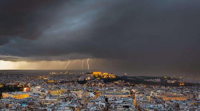 - ¿Eso te impresiona? Pues a ver qué te parece esto…De repente, el cielo se cubrió de unas nubes negras que, en cuestión de segundos, descargaron furiosas contra la tierra. Fascinada, Eleni contemplaba el espectáculo al abrigo del tejadillo.